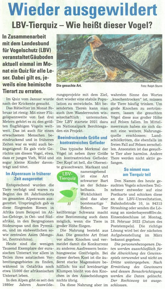 Artikel im Straubinger Tagblatt über eine Veranstaltung mit Dr. Martin Werneyer, LBV Kreisgruppe Straubing-Bogen