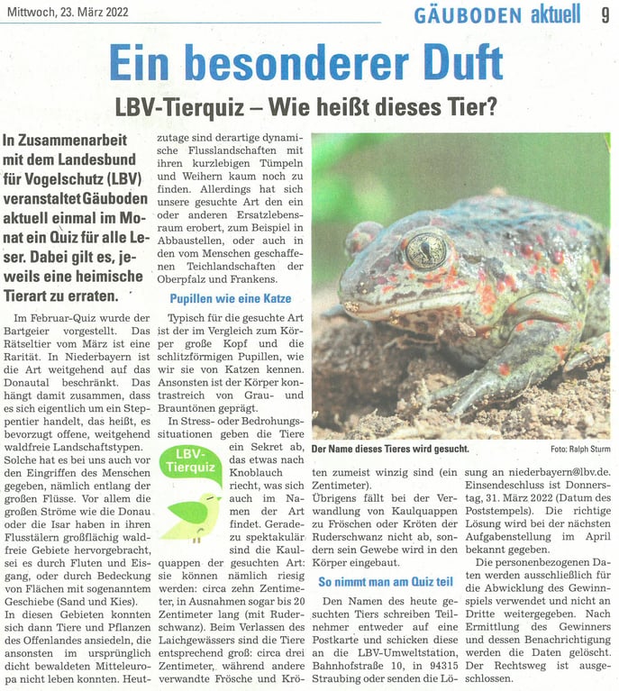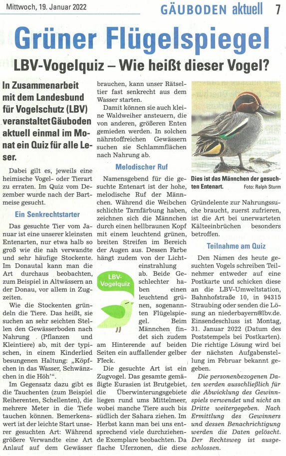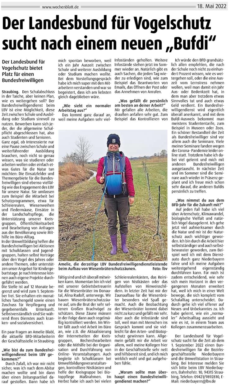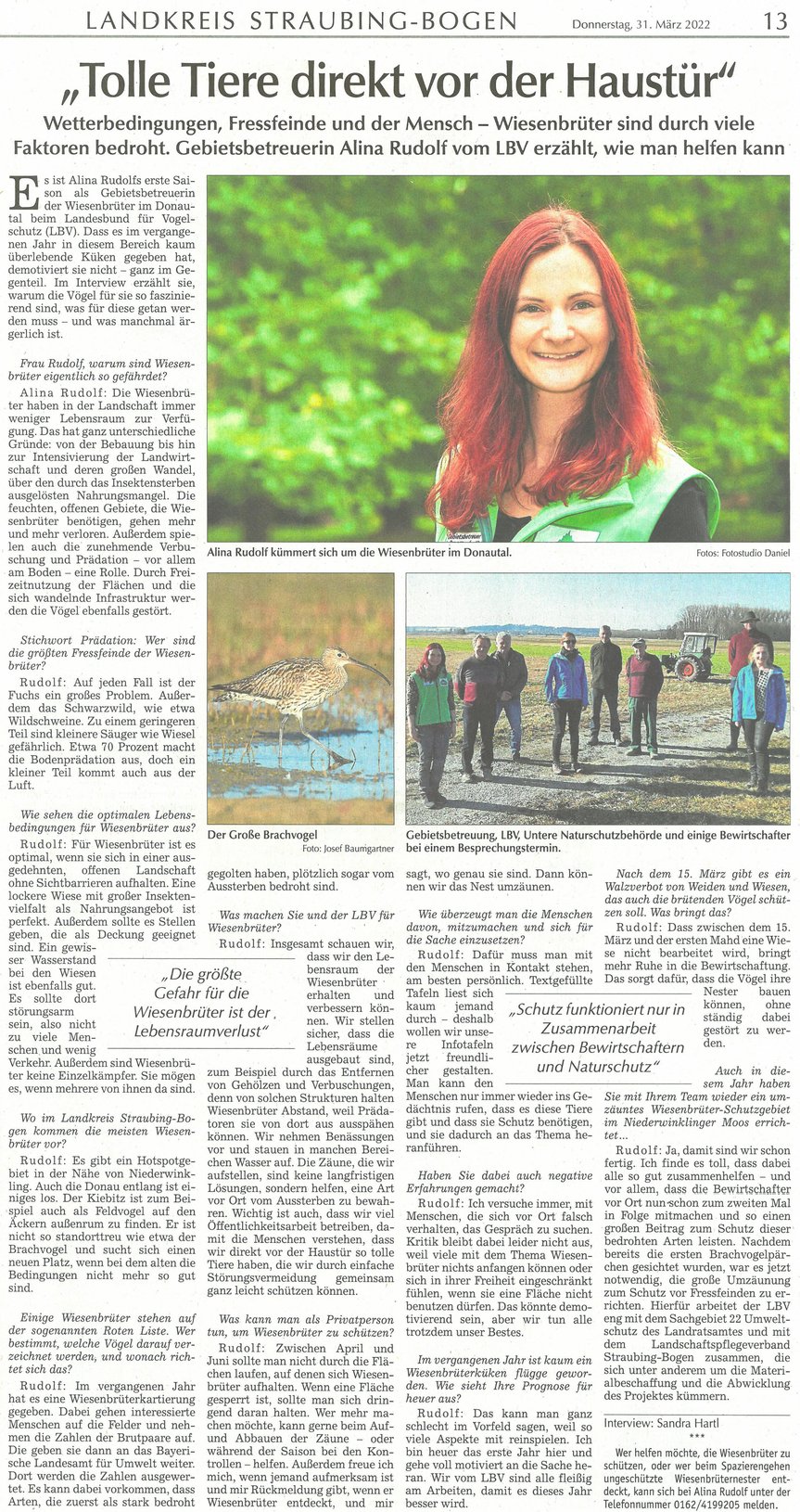 Artikel im Straubinger Tagblatt über LBV-Gebietsbetreuerin Alina Rudolf